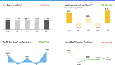 Dairy, food and beverages company Dean Foods reported a 47.7% jump in its profit from continuing operations for the fourth quarter of 2017 to $49.5 million…