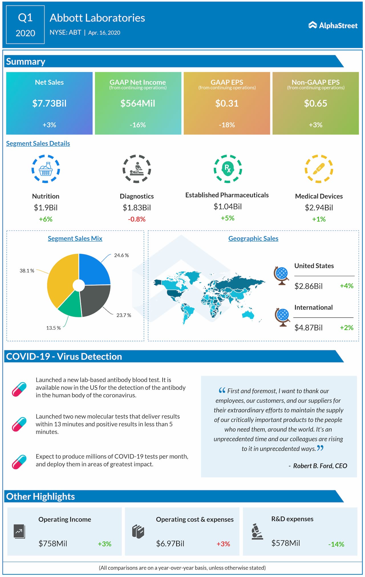 Abbott Laboratories (NYSE: ABT) reported its financial results for the quarter ended March 31, 2020 today.