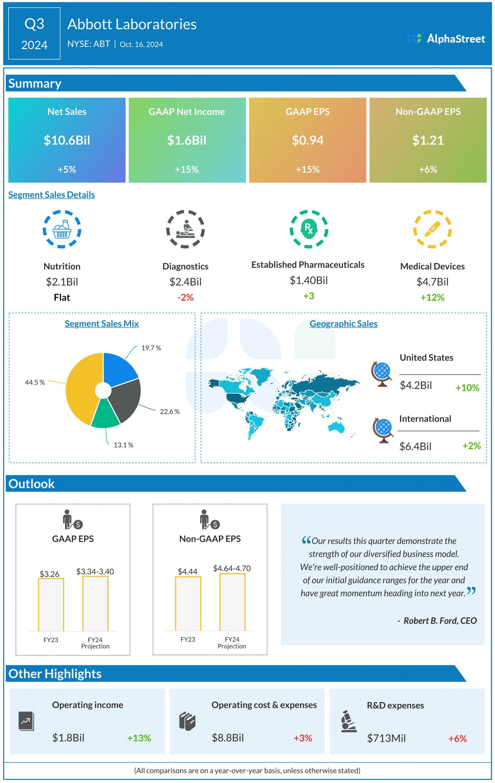 Abbott Laboratories (NYSE: ABT) reported third quarter 2024 earnings results today.