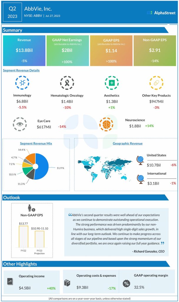 AbbVie is raising its full-year 2023 adjusted EPS guidance to $10.90-11.10 from the previous range of $10.57-10.97.