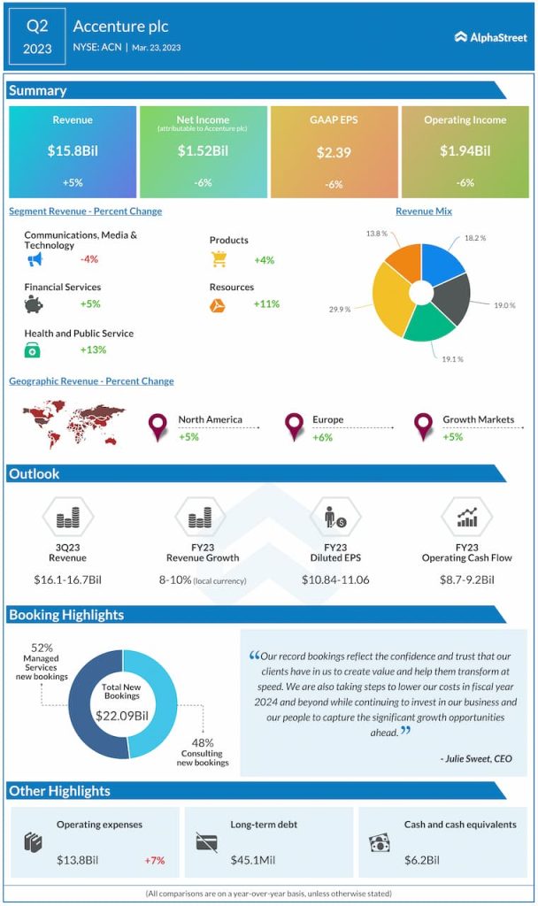 Accenture expects revenues for the third quarter of 2023 to be $16.1-16.7 billion.