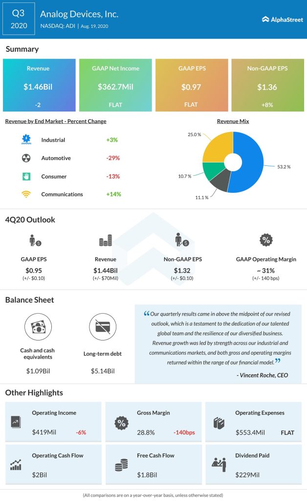 Analog Devices, Inc. (NASDAQ: ADI) today reported its first-quarter financial results for the period ended January 30, 2021.