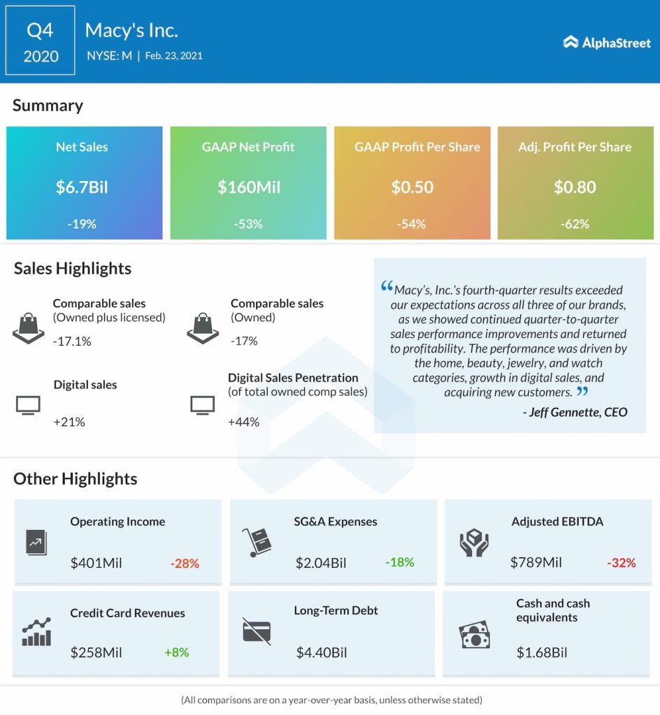 Macy’s saw higher demand in categories such as active, loungewear, home and beauty during 2020. The company will continue to improve its assortment in 2021 and remains ready to shift between categories as demand picks up once things normalize.