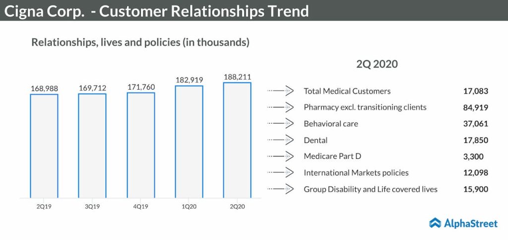 “We’ve delivered strong fundamental performance this year, while also seeing lower medical costs from deferred care and we continue to provide financial support to our clients and customers. We expect our strong fundamentals across our diverse portfolio of growth businesses to enable us to manage through the various impacts of the current environment, and as such, we continue to expect 2020 full-year adjusted EPS of $18 to $18.60 per share,” said Cigna’s CFO Eric Palmer while commenting on the June-quarter report.