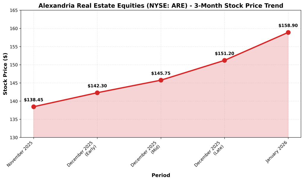 Alexandria Real Estate Equities had total market capitalization of $20.75 billion as of December 31, 2025. Total equity capitalization was $8.35 billion. Stockholders’ equity declined to $15.47 billion from $17.89 billion at year-end 2024. The company operates 35.9 million rentable square feet of operating properties across North America with 3.5 million square feet under construction. Common shares outstanding totaled approximately 170.4 million shares as of December 31, 2025.