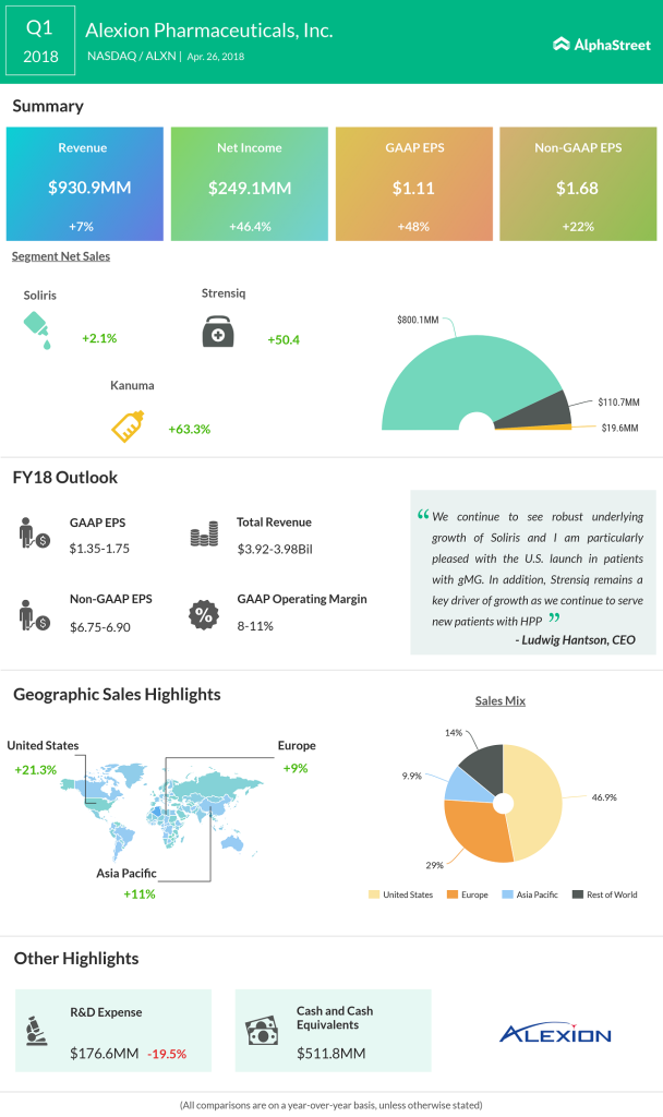 Net product sales of the key drug Soliris, which accounts for a bulk of the company’s revenue and is used to treat serious genetic-based blood condition, grew 2% during the quarter to $800.1 million.