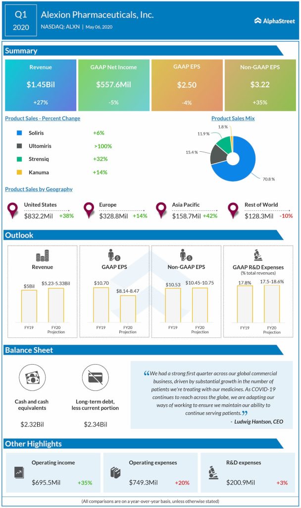 While the COVID-19 impact varies by study and program, generally, the company expects there will be little timing impact on fully-enrolled trials and a timing shift of at least three months on trials. The company is exploring the potential role of Ultomiris and Soliris for the treatment of severe COVID-19 and has recently initiated a Phase 3 randomized controlled trial of Ultomiris in a subset of adults with coronavirus.