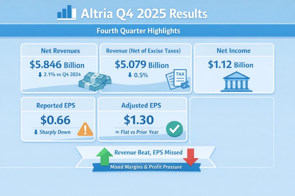 Altria expects 2026 adjusted diluted EPS of $5.56 to $5.72 per share. This implies approximately 2.5%–5.5% growth over the 2025 base EPS of $5.42. The company anticipates earnings growth weighted toward the second half of the year.