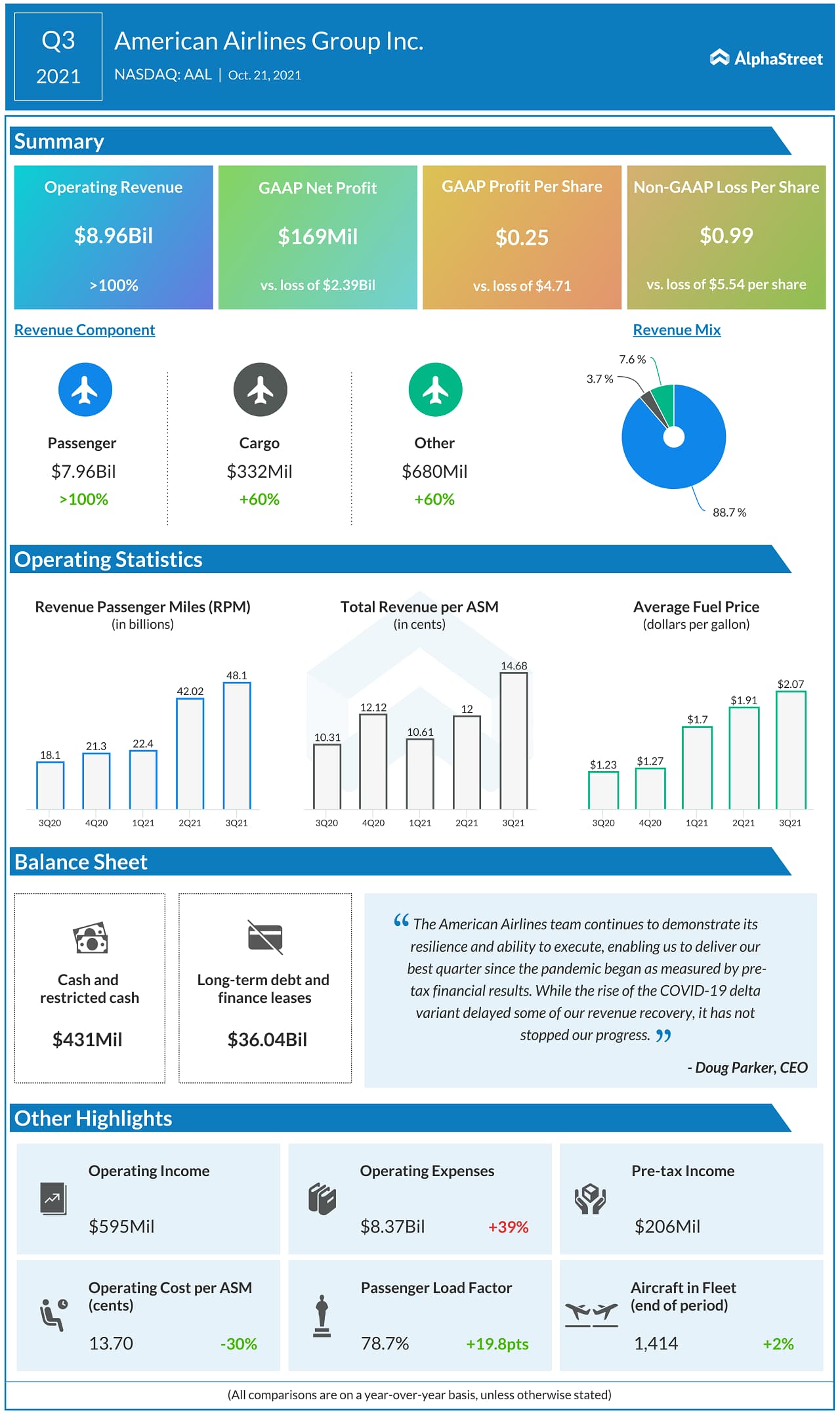 American Airlines Group Inc. (NASDAQ: AAL) today reported its third quarter financial results for the period ended September 30, 2021.