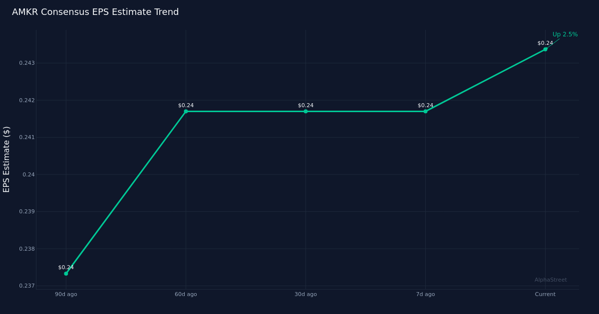 Track record matters for positioning. While specific beat/miss history data is not available in the verified dataset, semiconductor equipment and materials companies typically exhibit meaningful earnings volatility tied to semiconductor industry cycles, customer order timing, and yield dynamics in advanced packaging technologies. The wide dispersion in analyst estimates—spanning $0.22 to $0.27 on the EPS side—reflects inherent uncertainty around the pace of the recovery and the mix of packaging technologies flowing through Amkor’s factories during the quarter.