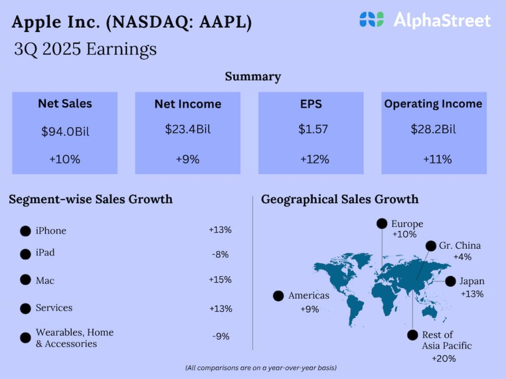 “Today Apple is proud to report a June quarter revenue record with double-digit growth in iPhone, Mac, and Services and growth around the world, in every geographic segment. At WWDC25, we were excited to introduce a beautiful new software design that extends across all of our platforms, and we announced even more great Apple Intelligence features,” said Tim Cook, Apple’s CEO.