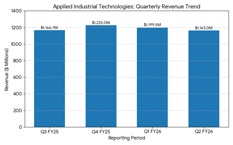 For the quarter ended December 31, 2025, Applied Industrial Technologies reported net sales of $1.20 billion, representing an 8.4% increase year-over-year. On an organic basis (excluding the effects of acquisitions and currency translation), sales grew 2.2% compared with the prior year period.