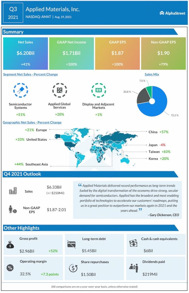 For the fourth quarter of 2021, Applied expects net sales of approx. $6.33 billion, plus or minus $250 million. Adjusted EPS is expected to range between $1.87-2.01.