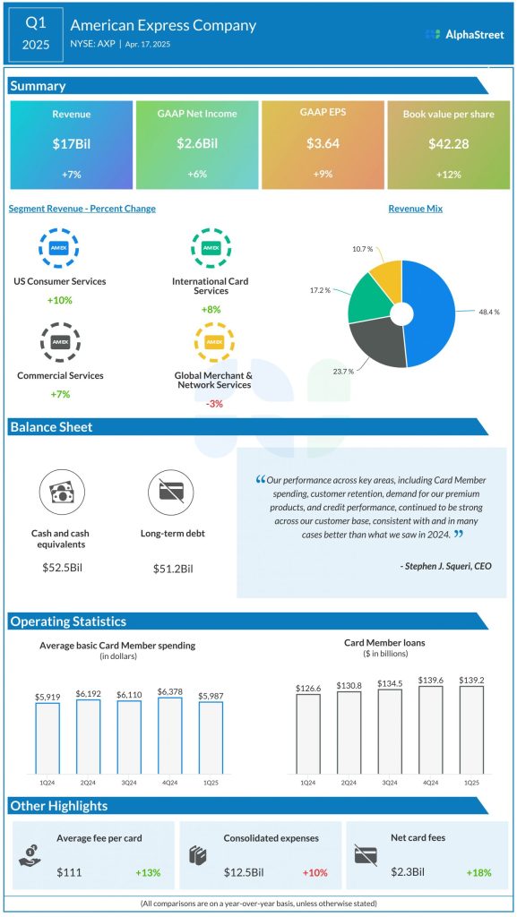 Based on the steady spend and credit trends seen so far and the current economic outlook, the company is maintaining its full-year 2025 guidance for revenue growth of 8-10% and EPS of $15.00-15.50.