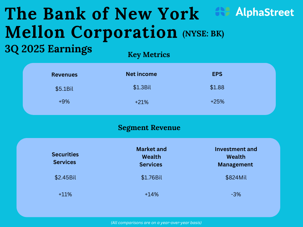 The Bank of New York Mellon Corporation (NYSE: BK) reported its third quarter 2025 earnings results today.
