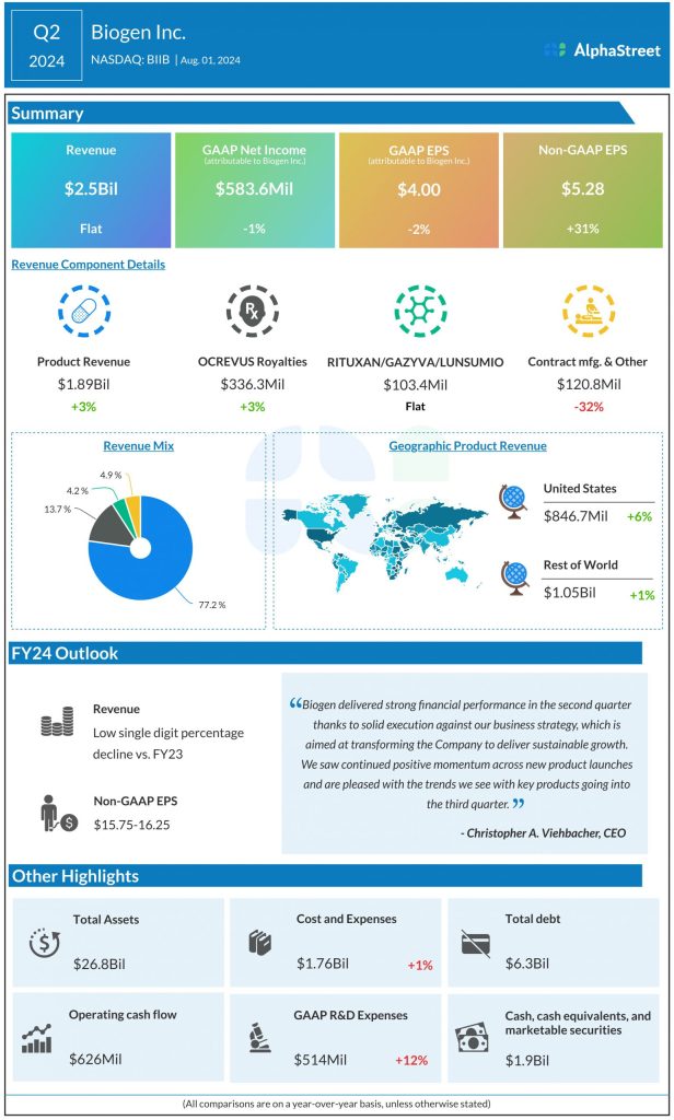 Net income attributable to Biogen Inc. was $583.6 million compared to $591.6 million last year.