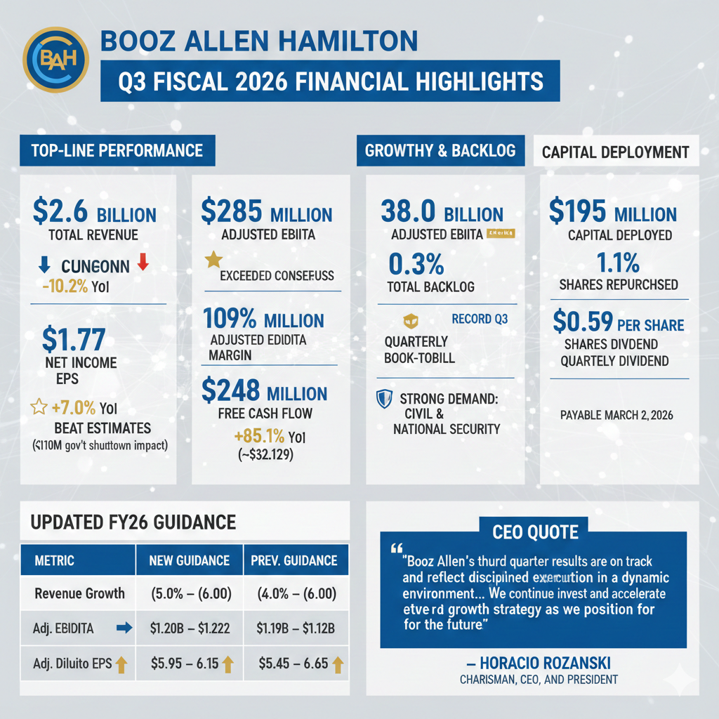 BAH shares rose slightly following the release of third quarter fiscal 2026 results, reflecting investor focus on stronger-than-expected earnings despite a decline in revenue and slower new bookings.