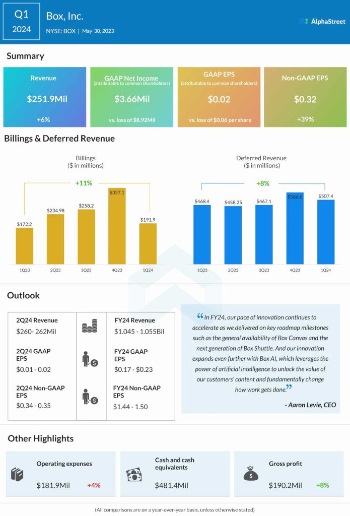 “In FY24, our pace of innovation continues to accelerate as we delivered on key roadmap milestones such as the general availability of Box Canvas and the next generation of Box Shuttle,” said Box’s CEO Aaron Levie.