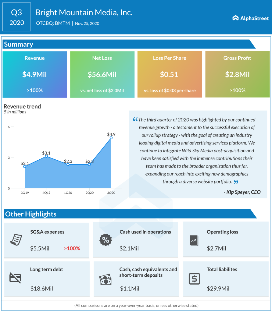 In an interview with AlphaStreet, Bright Mountain Media CFO Ed Cabanas said the acquisitions helped the firm expand to highly valued verticals. “With Wild Sky came several female-focused parenting websites with approximately 25 to 30 million unique visitors. So from an acquisition perspective, we are targeting more of the digital publishers and the key niche verticals that we are focused on, as well as technologies that can help in analytics data integration, optimization, fraud prevention, etc,” he said.