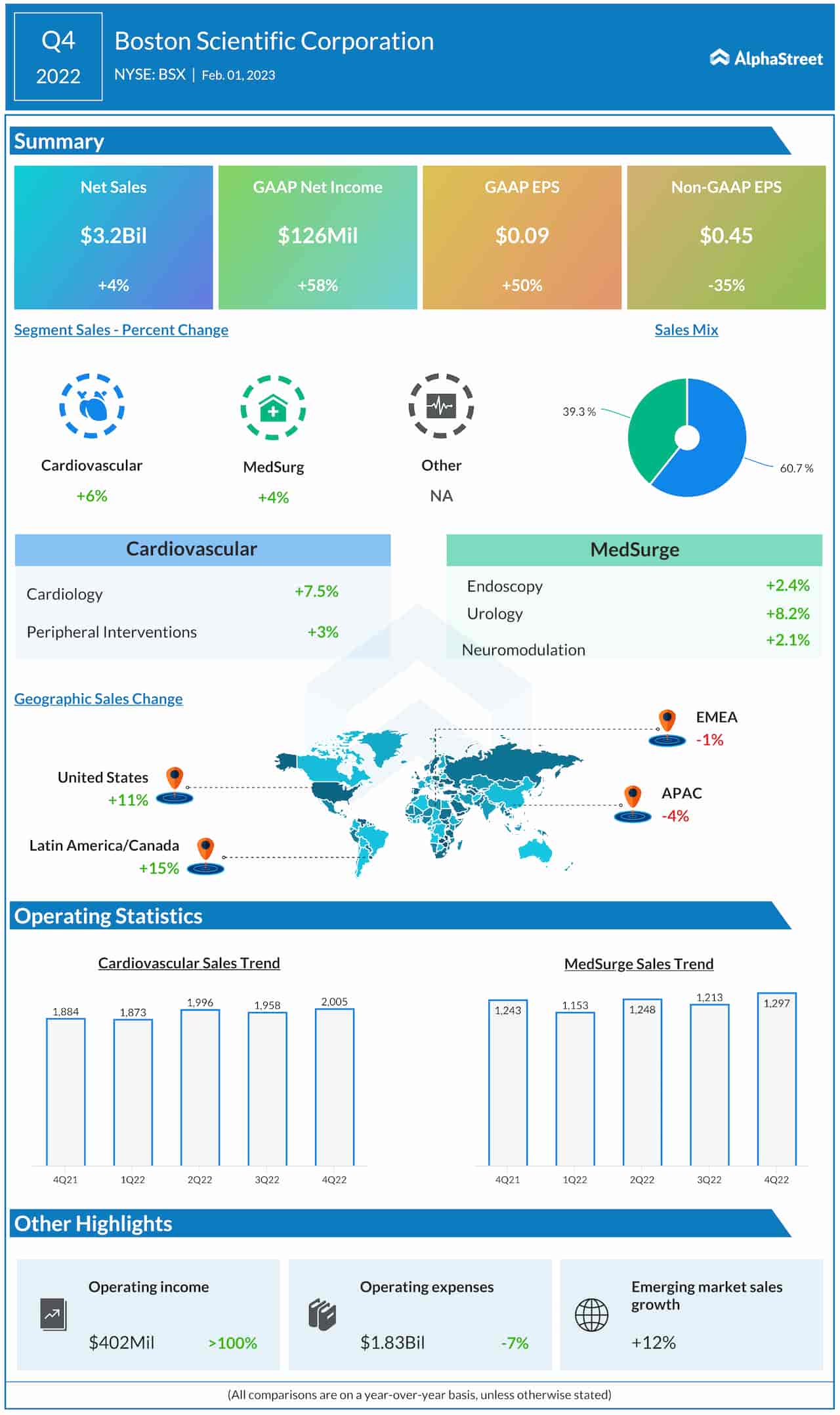 Medical device maker Boston Scientific Corporation (NYSE: BSX) has announced financial results for the fourth quarter of 2022, reporting a decline in adjusted profit and a modest increase in sales.