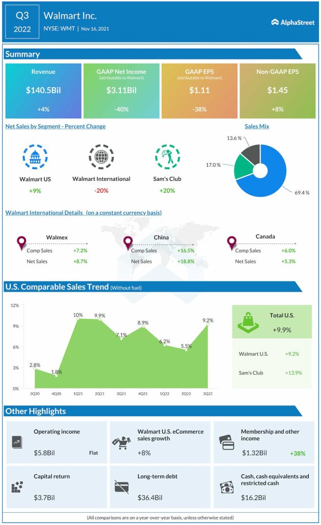 Read management/analysts’ comments on Walmart’s Q3 2022 results