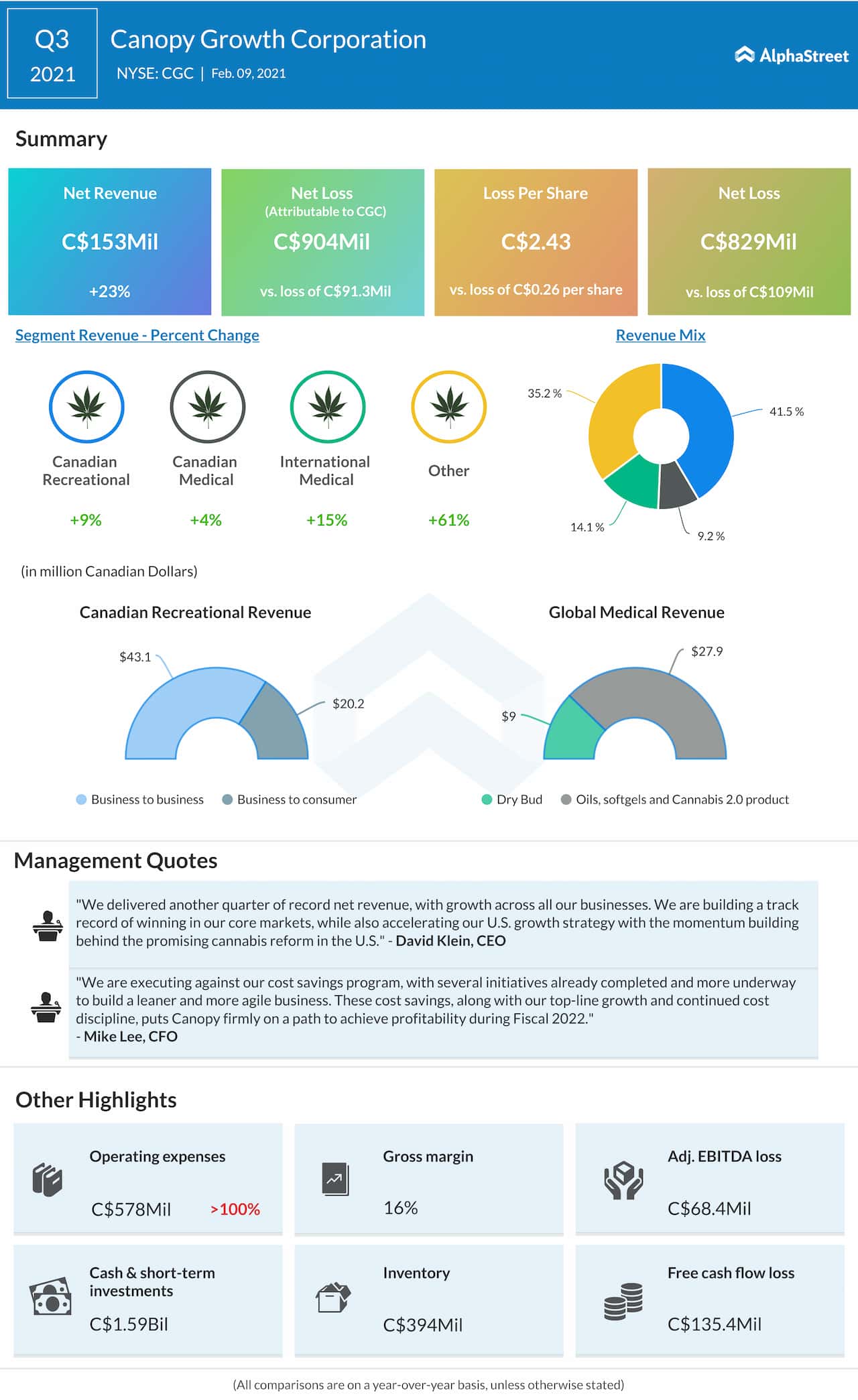 Canopy Growth Corporation (NYSE: CGC) reported Third quarter 2021 earnings results today.