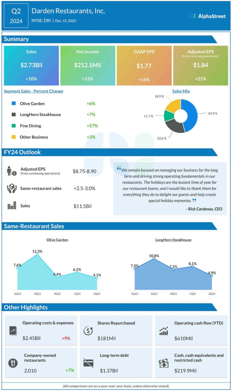 Darden Restaurants (DRI) reports higher Q2 sales and earnings