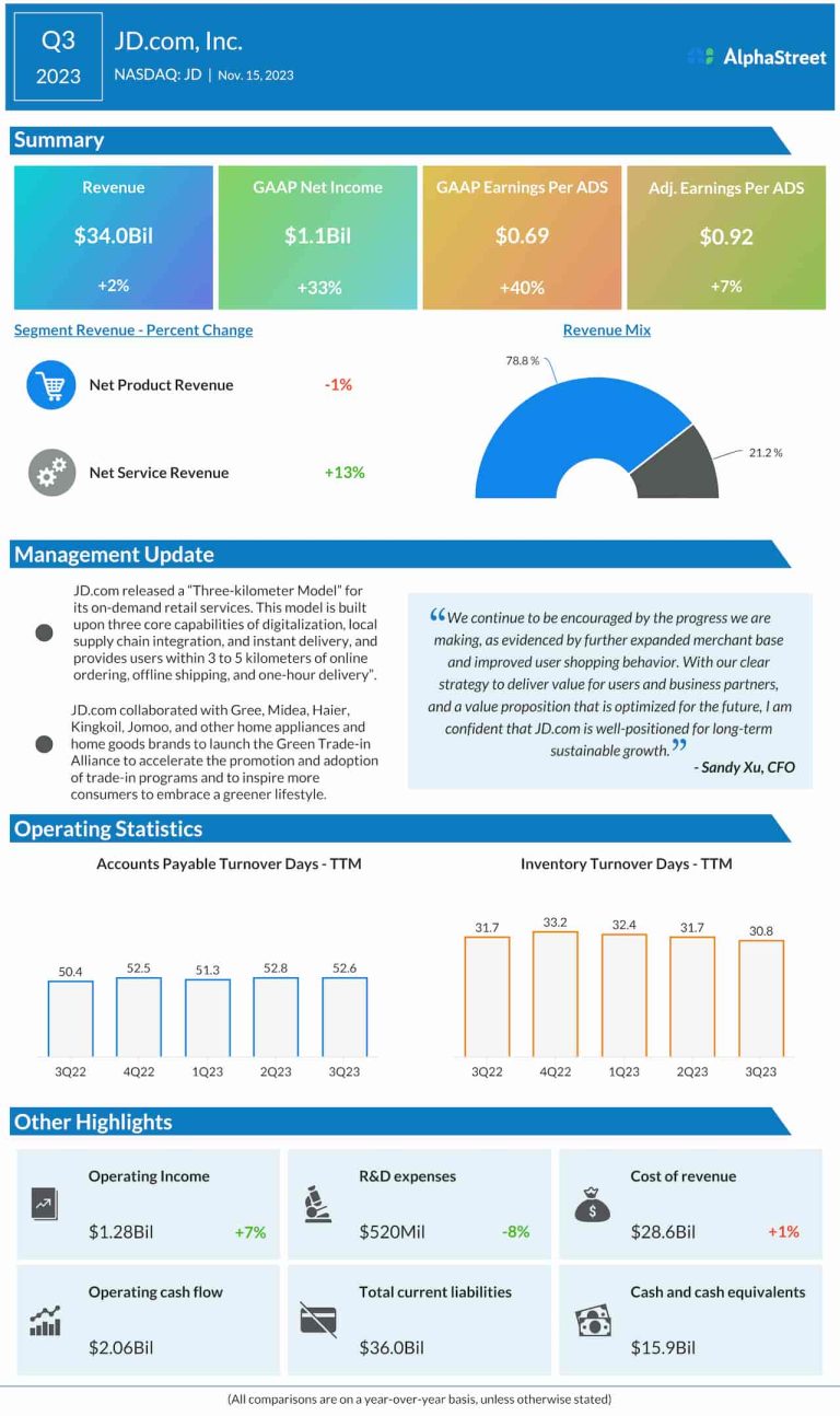 JD Earnings: JD.Com reports higher revenues and profit for Q3 2023