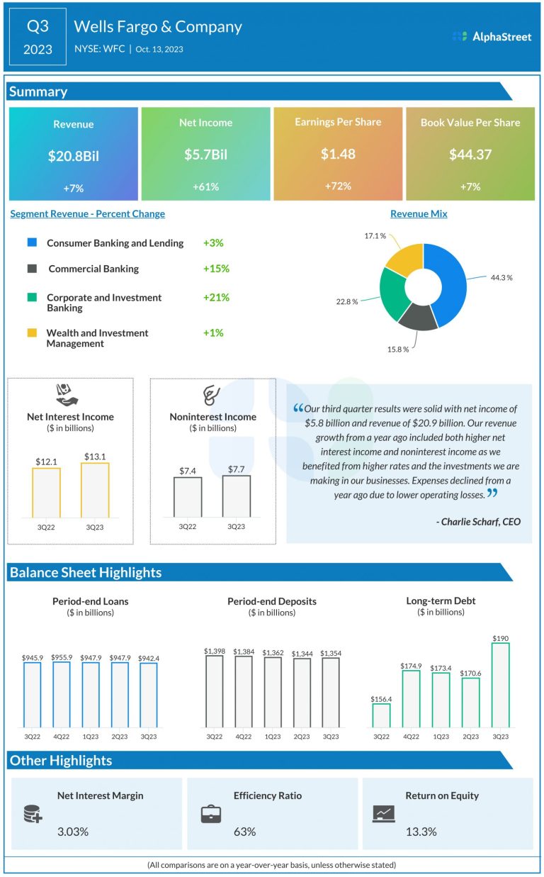Wells Fargo & Company (NYSE: WFC) reported third quarter 2023 earnings results today. Total revenue increased 7% year-over-year...