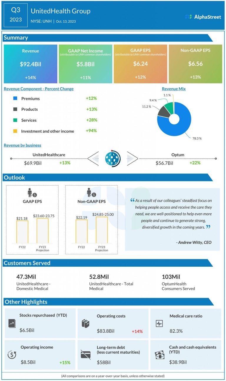 UnitedHealth Group (NYSE: UNH) reported third quarter 2023 earnings results today. Revenues grew 14% year-over-year to $92.4 billion....