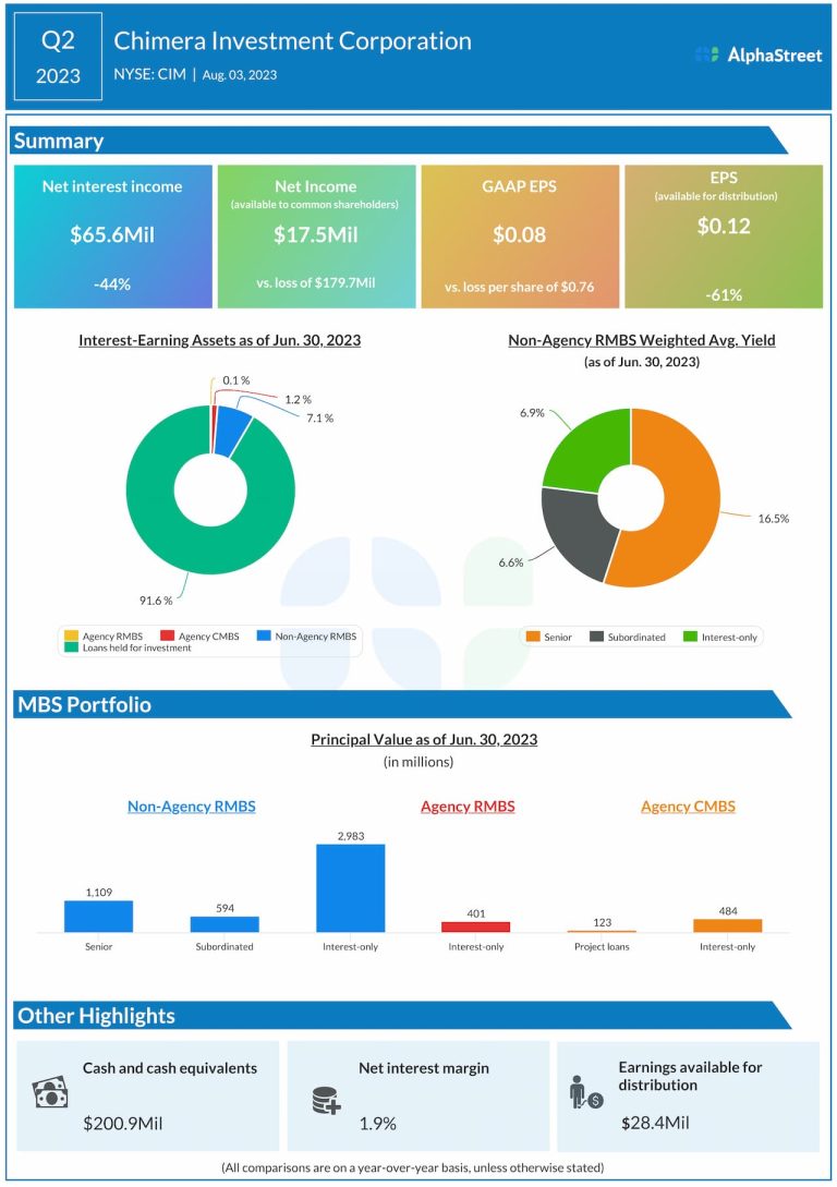 Chimera Investment Corporation (NYSE: CIM) reported second quarter 2023 earnings results today. Net interest income was $65.6 million...