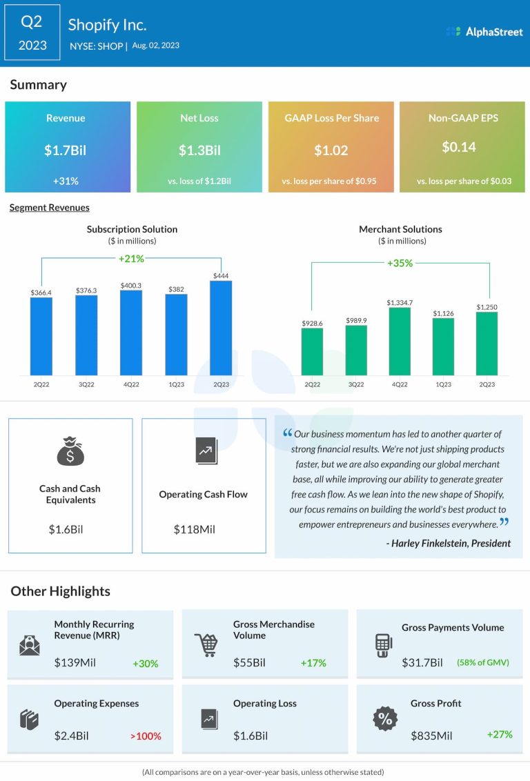 Shopify Inc. (NYSE: SHOP) reported total revenue of $1.7 billion for the second quarter of 2023, which was...