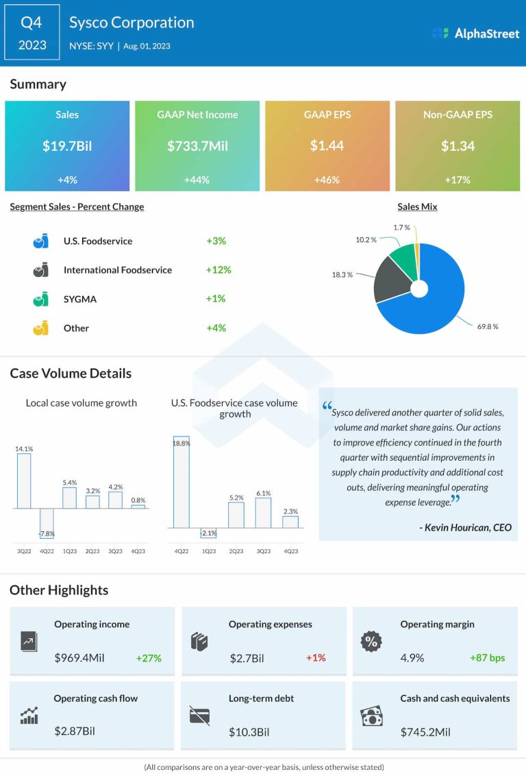 Food distribution company Sysco Corporation (NYSE: SYY) announced fourth-quarter 2023 financial results, reporting higher earnings and revenues. Sysco’s June...