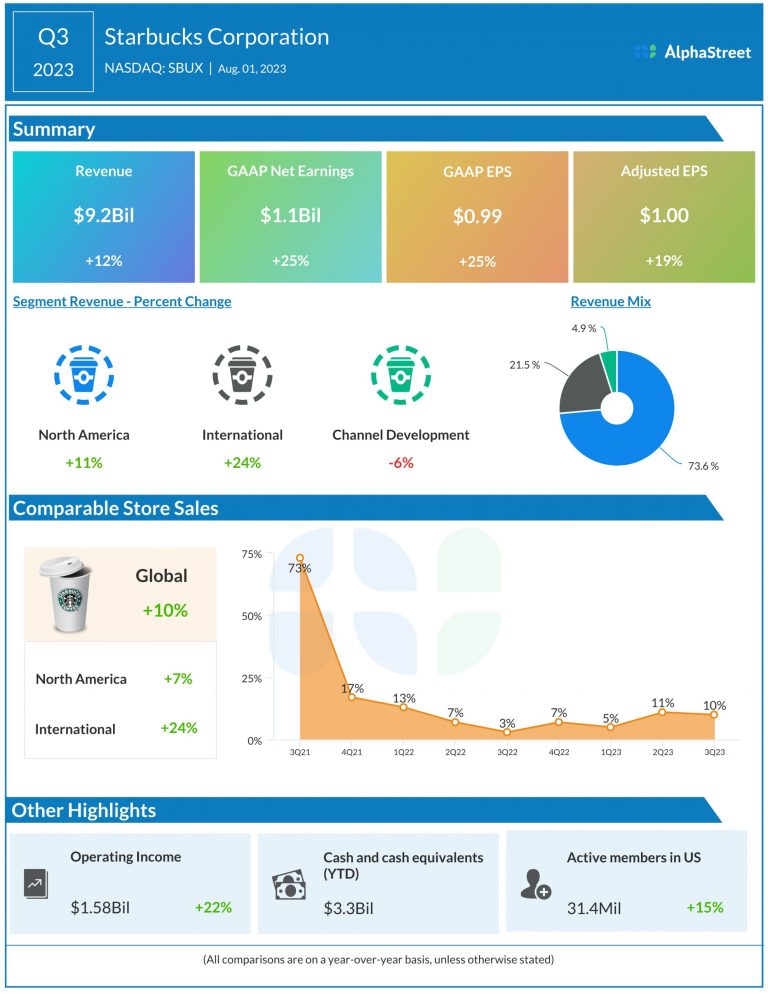 Starbucks (SBUX) Q3 2023 Earnings: Key financials and quarterly highlights