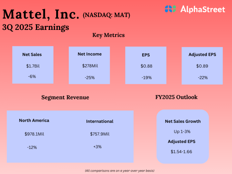Mattel, Inc. (NASDAQ: MAT) reported net sales of $1.73 billion for the third quarter of 2025. Sales were...