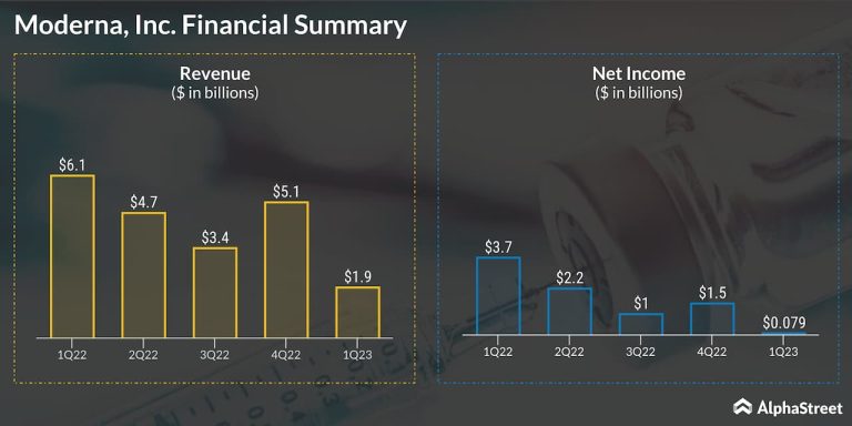 Moderna, Inc. (NASDAQ: MRNA) reported first quarter 2023 earnings results today. Total revenue was $1.9 billion, compared to...