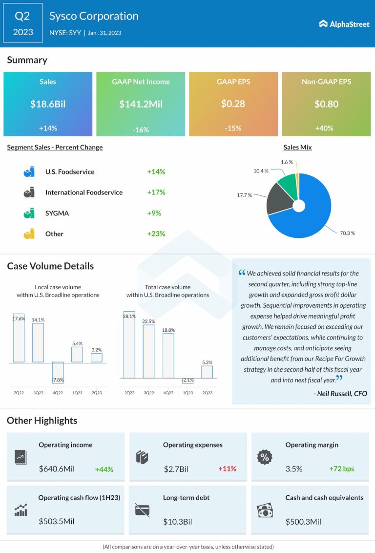 Sysco Corporation (NYSE: SYY) reported sales of $18.6 billion for the second quarter of 2023, up 13.9% compared...