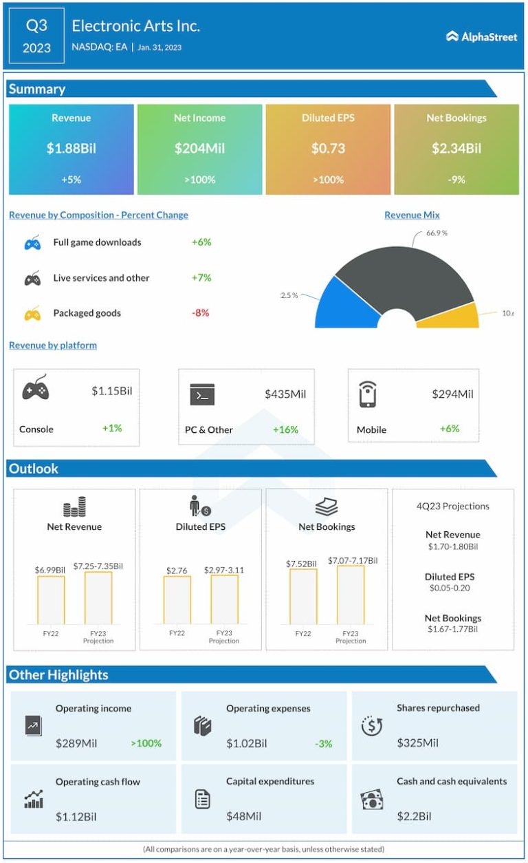 Electronic Arts (NASDAQ: EA) reported total net revenue of $1.88 billion for the third quarter of 2023 compared...