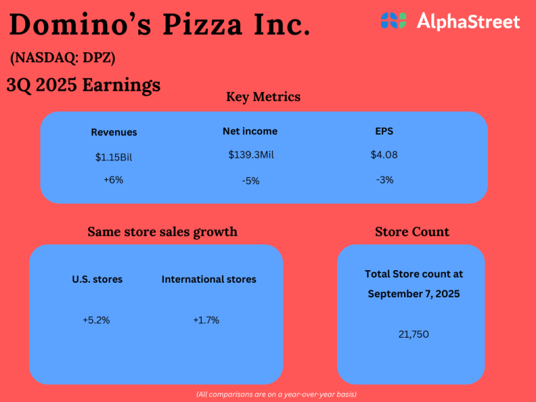 Domino’s Pizza, Inc. (NASDAQ: DPZ) reported its third quarter 2025 earnings results today. Total revenues increased 6.2% year-over-year...