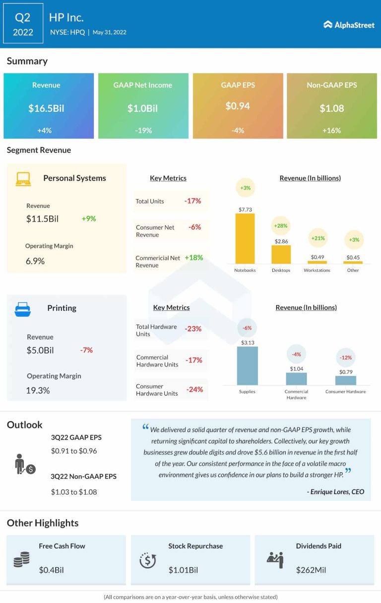 Technology firm HP, Inc. (NYSE: HPE) on Tuesday reported higher earnings and revenues for the second quarter of...