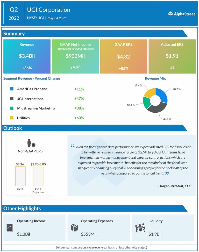 UGI Corporation (NYSE: UGI) reported total revenue of $3.4 billion for the second quarter of 2022. GAAP EPS was...