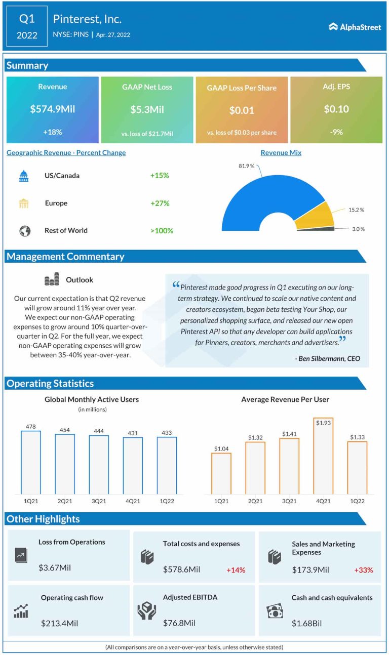 Image sharing platform Pinterest, Inc. (NYSE: PINS) has reported lower earnings for the first quarter of 2022, despite a...