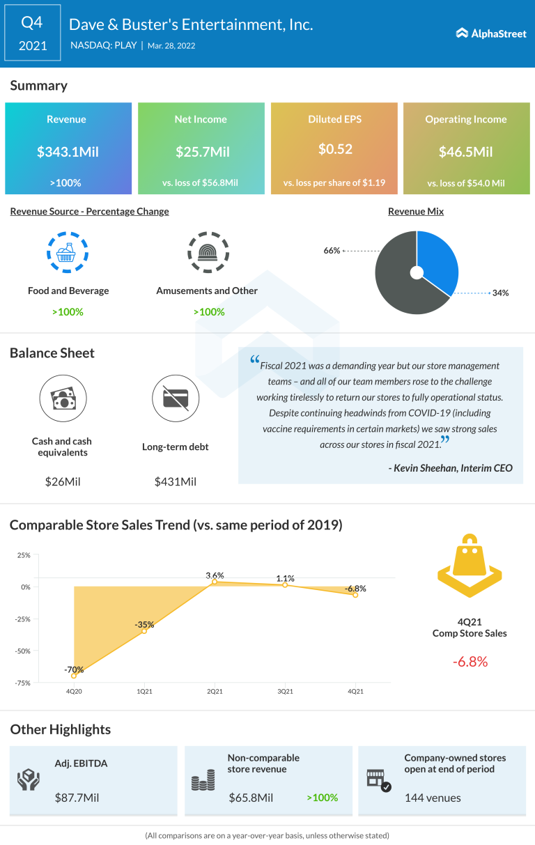 Dave & Buster’s Entertainment, Inc. (NASDAQ: PLAY), which operates a chain of casual dining and leisure facilities, reported net...