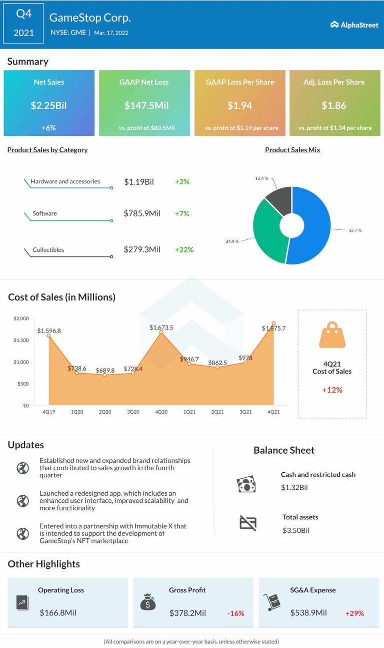 GameStop Corp. (NYSE: GME) has reported a surprise loss for the fourth quarter of 2021, compared to profit...