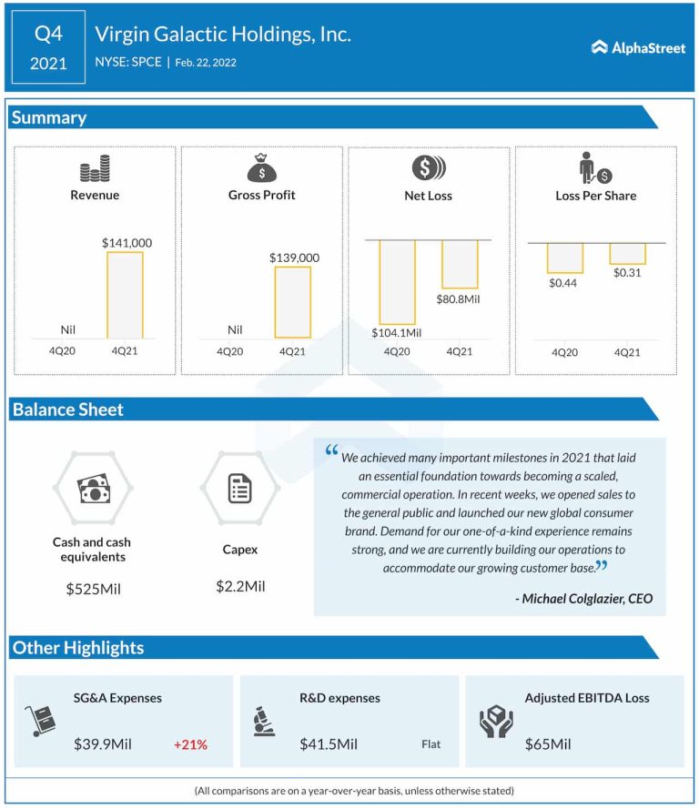 Virgin Galactic Holdings (NYSE: SPCE) has reported financial results for the fourth quarter of 2021. The space tourism...