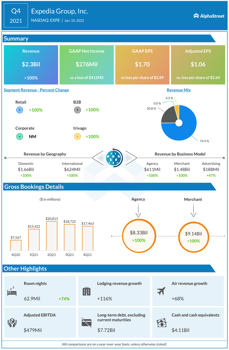 Expedia Group (NASDAQ: EXPE) recently reported its fourth-quarter 2021 financial results. The travel company’s revenues more than doubled year-over-year...