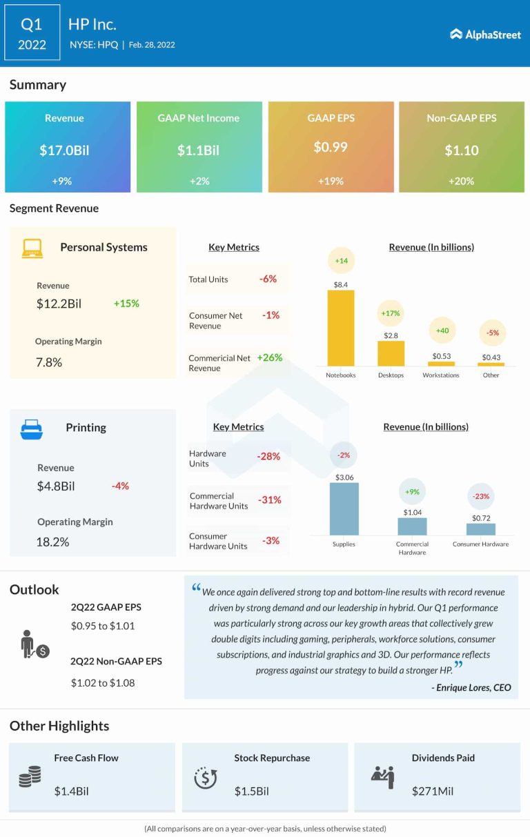 Technology firm HP, Inc. (NYSE: HPE) Monday reported higher earnings and revenues for the first quarter of 2022....
