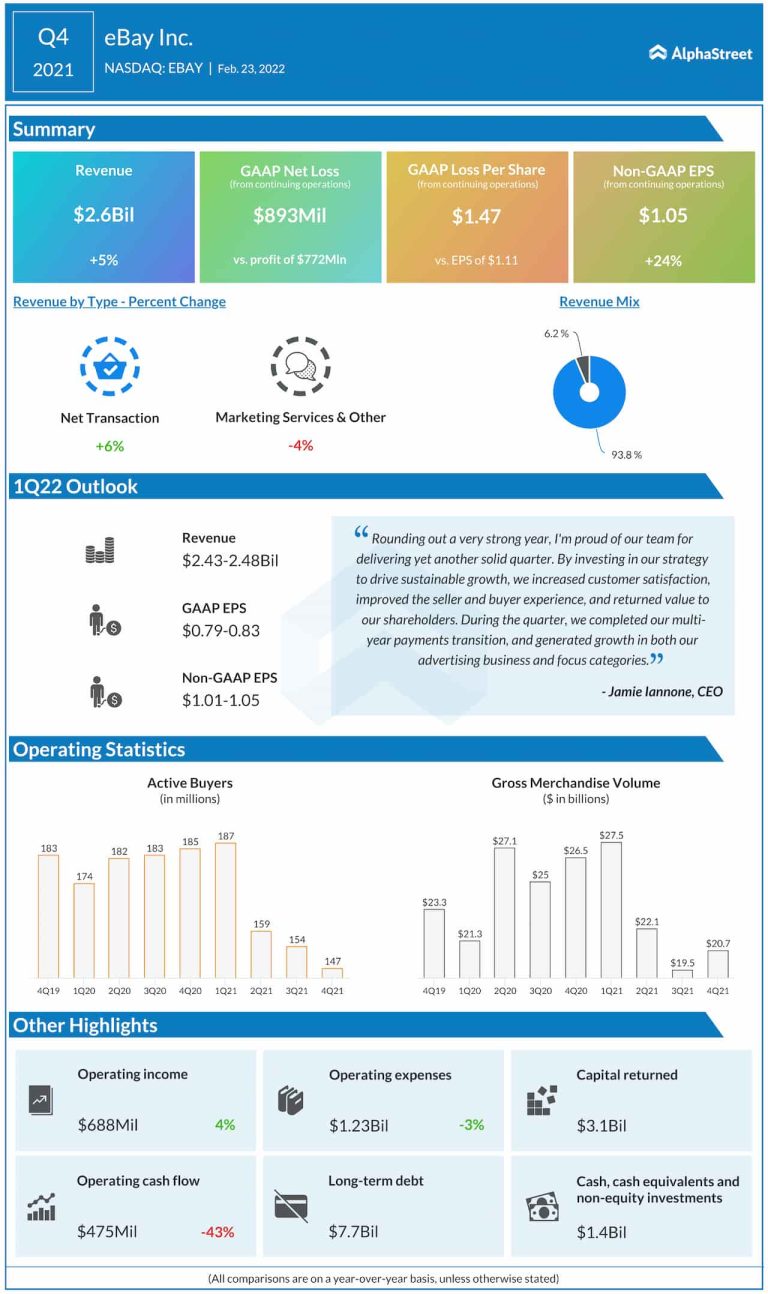 E-commerce platform eBay Inc. (NASDAQ: EBAY) on Wednesday reported higher earnings and revenues for the fourth quarter of...