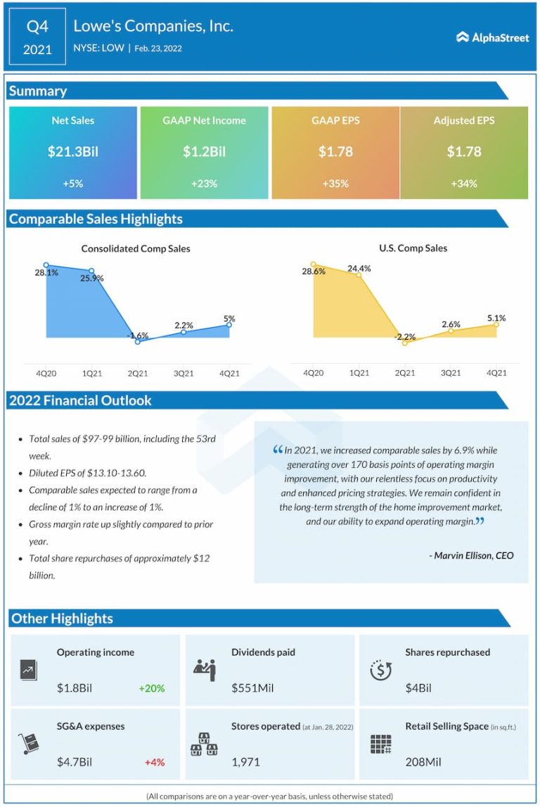 Lowe’s Companies, Inc. (NYSE: LOW) reported fourth quarter 2021 earnings results today. Total sales rose to $21.3 billion...