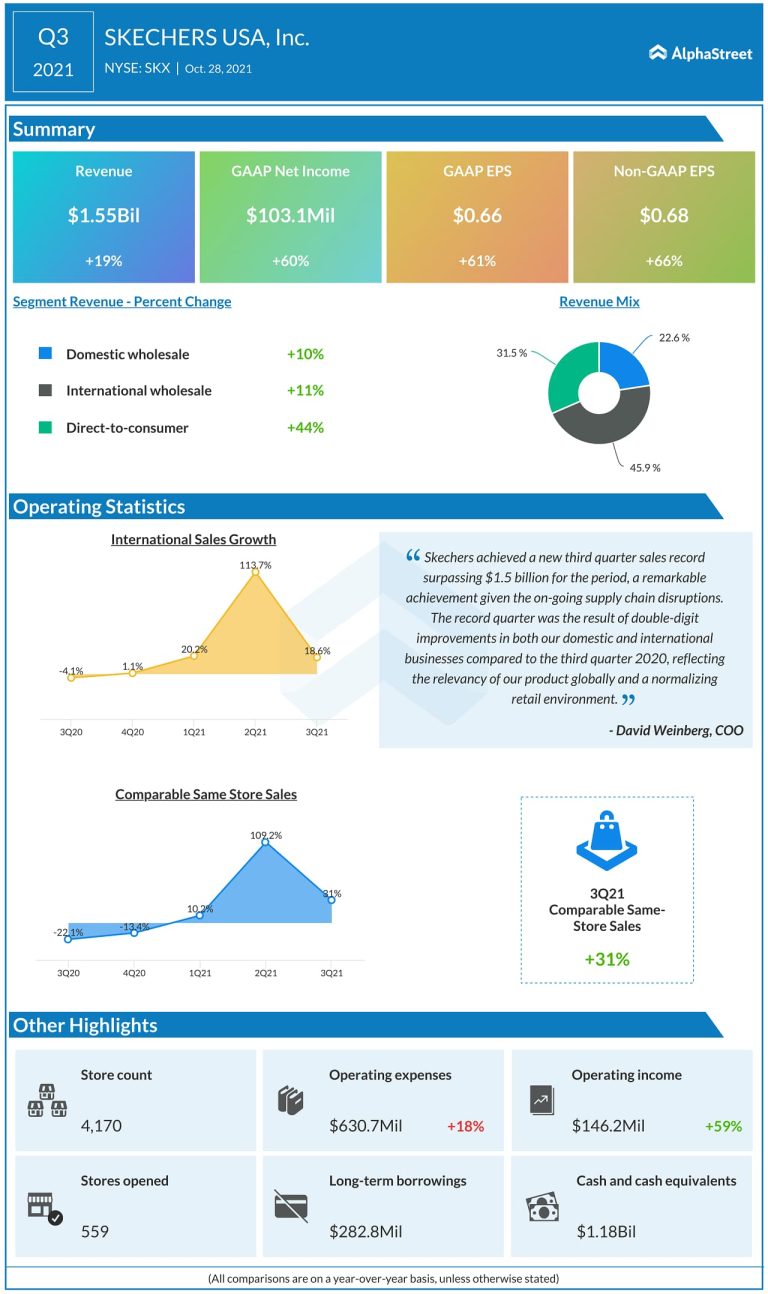 Skechers USA (NYSE: SKX) reported its third quarter financial results for the period ended September 30, 2021. GAAP...